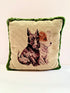 Vintage Needlepoint Dog Pillow with Green Fringe